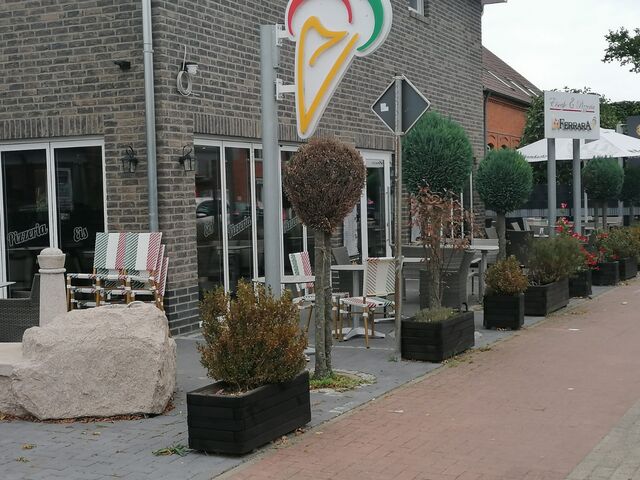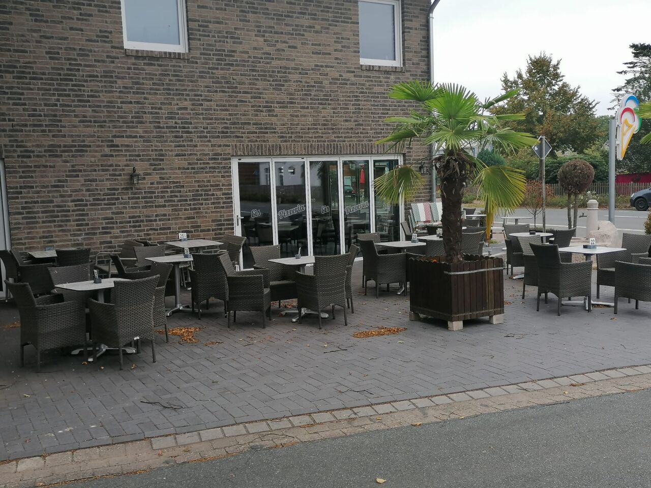 Bei gutem Wetter können Sie Ihren Eisbecher in unserem großen Außenbereich genießen.